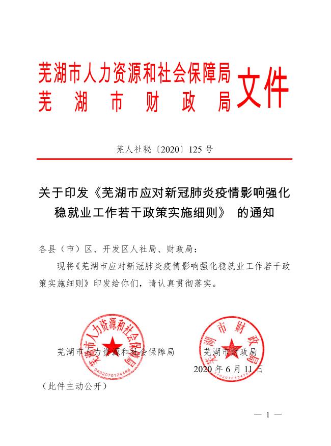 關(guān)于印發(fā)《蕪湖市應(yīng)對(duì)新冠肺炎疫情影響強(qiáng)化 穩(wěn)就業(yè)工作若干政策實(shí)施細(xì)則》的通知
