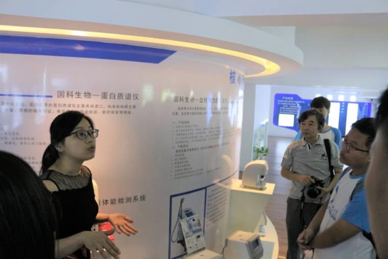 圖為安徽國科生物科技有限公司負(fù)責(zé)人向團隊成員及指導(dǎo)老師介紹公司先進(jìn)的科技產(chǎn)品和已經(jīng)取得的成績。通訊員彭文婷攝